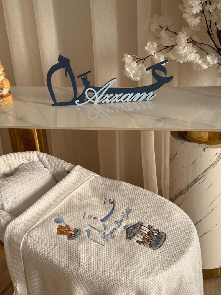 ثري دي بإسم مولود + بطانية مطرزة حسب الطلب