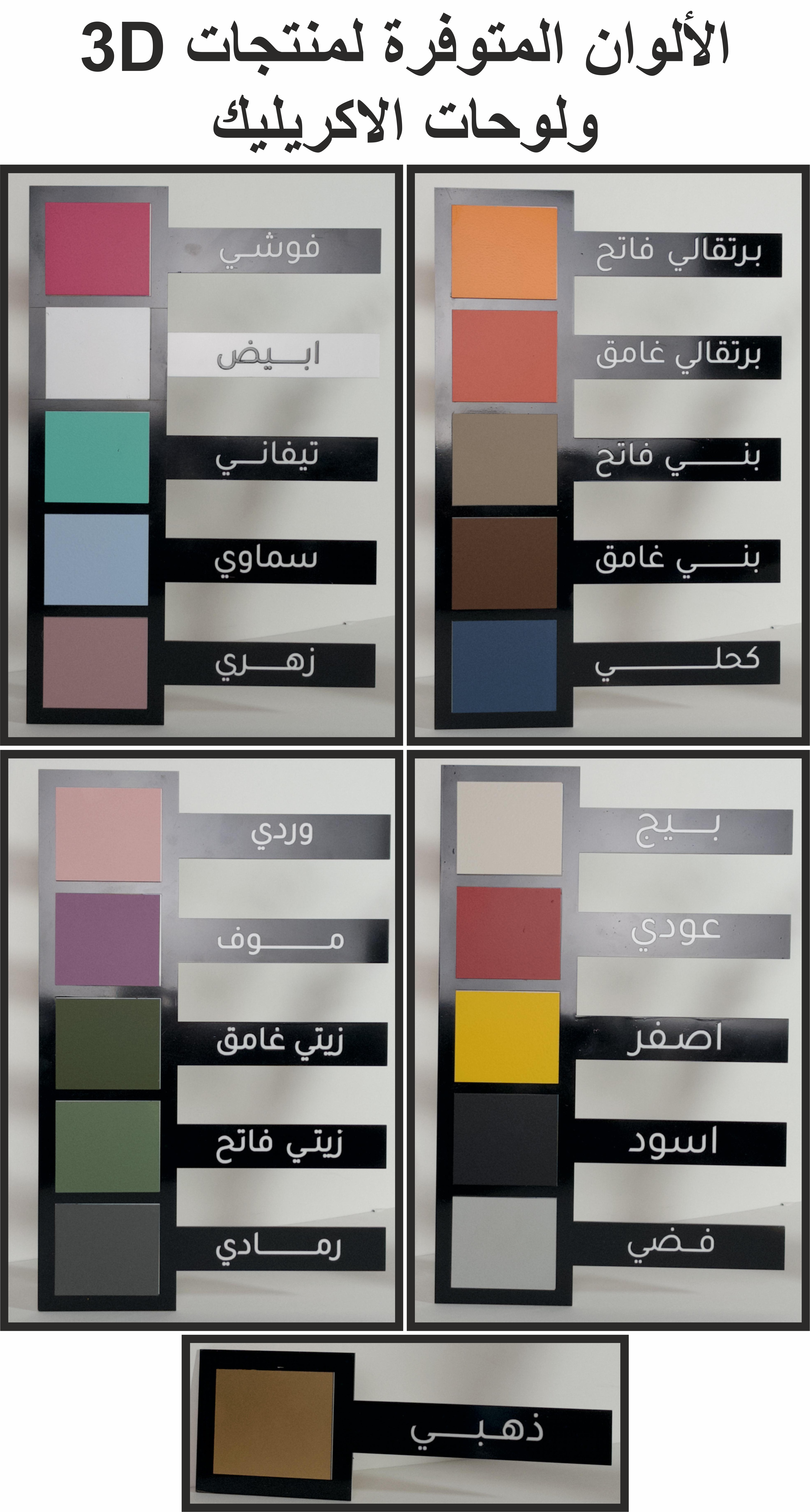 درجات الألوان المتوفرة لأعمال ال 3D والاكريلك
